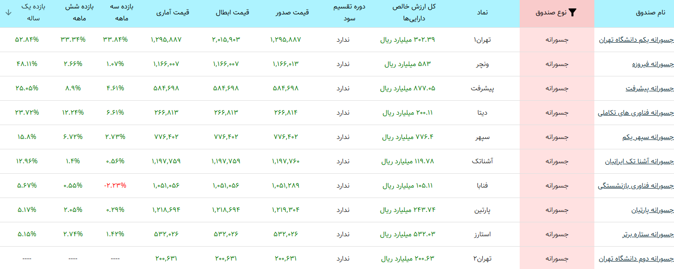 درحال حاضر ۱۸ صندوق جسورانه ETF پذیرفته شده در فرابورس داریم. که بر اساس بازدهی های سه ماهه، شش ماهه و یک ساله منتشر شده در سایت fipiran، صندوق جسورانه...